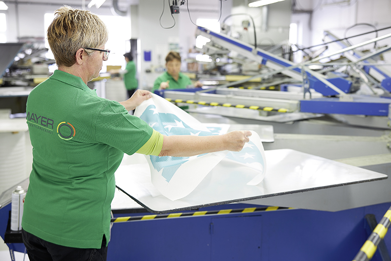 Die Textildruckerei Mayer GmbH beschäftigt sich mit der Entwicklung smarter Textilien; der Schwerpunkt liegt auf hybriden und Beschichtungslösungen, die auf textile wie nicht-textile Trägermaterialien aufgetragen werden. Eine Spezialität ist die Kombination von Beschichtungen und elektronischem wie sensorischem Know-how. Letzteres bringt Geschäftsführer Michael Steidle ein, der als gelernter Elektronikermeister die Entwicklung von funktionalen Beschichtungen vorantreibt, die Textilien zum Leuchten, Heizen oder Schalten bringen. Die Anwendungen dieser Innovationen reichen von exklusiven Einzelanfertigungen für Auto-Interieurs bis hin zu Großserien, beispielsweise für die Möbelindustrie.
